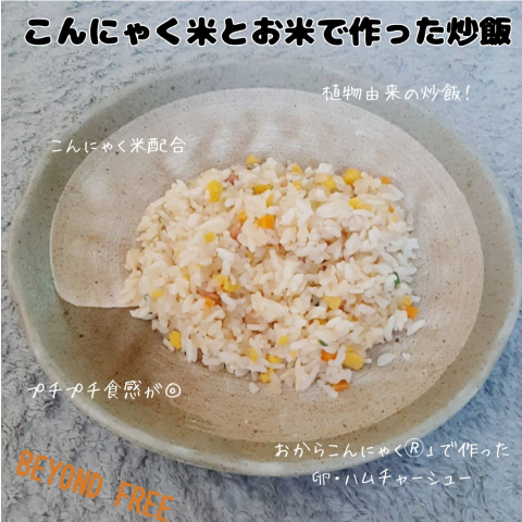 BEYOND FREE【こんにゃく米とお米で作った炒飯】レンチンで食べられる、動物性原材料不使用のチャーハンこんにゃく米配合!